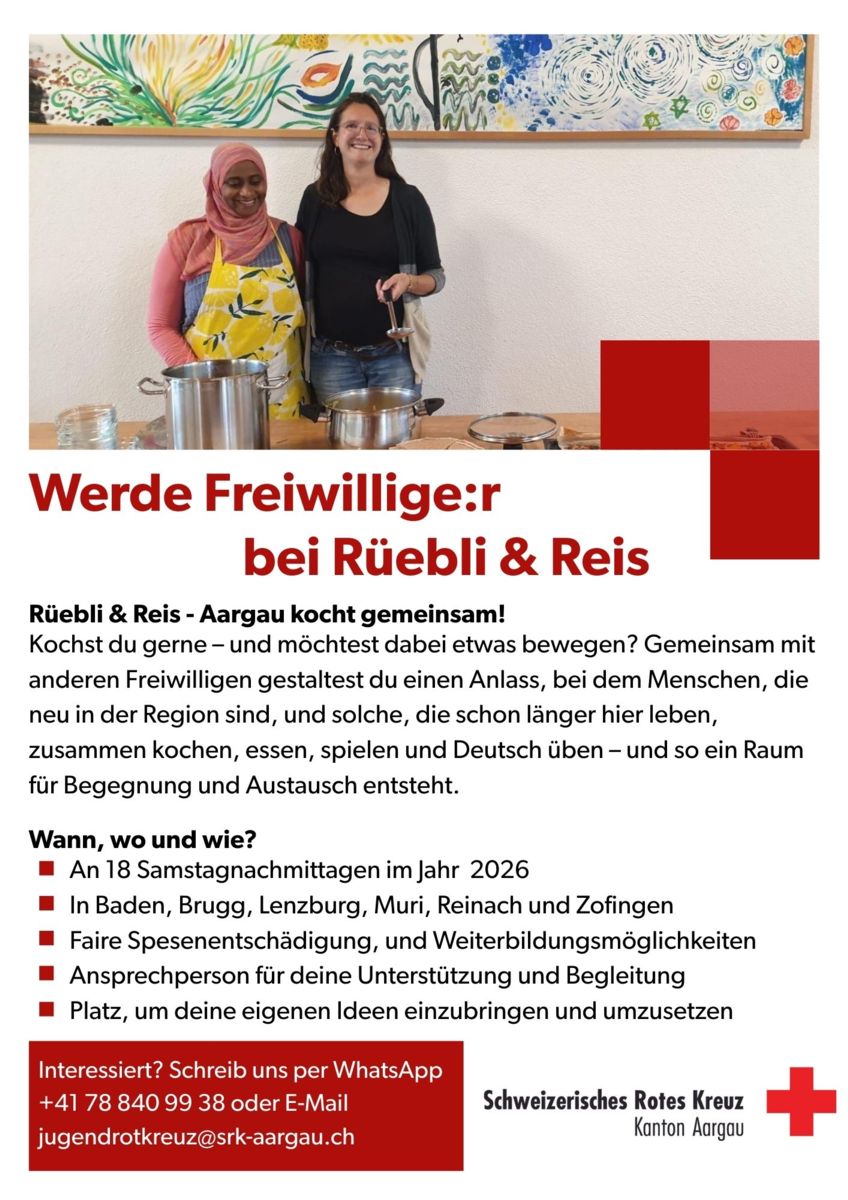 NEU: «Rüebli&Reis» ein Projekt des Jugendrotkreuz Kanton Aargau, In der Region aargauSüd am 14.2./ 20.6./17.10.